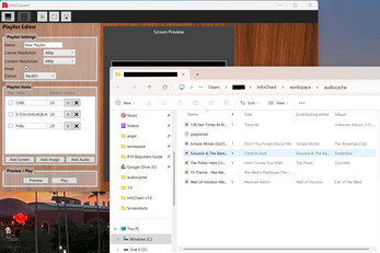 Combine screens with per-screen timing, Images, and even animated gifs. Render them clean or using old tv color clamping like old analog tv (rec.601) and early hd days (rec.709). It even works with the images and animated gifs! Add music and audio to be played randomly, or in a set playlist!
